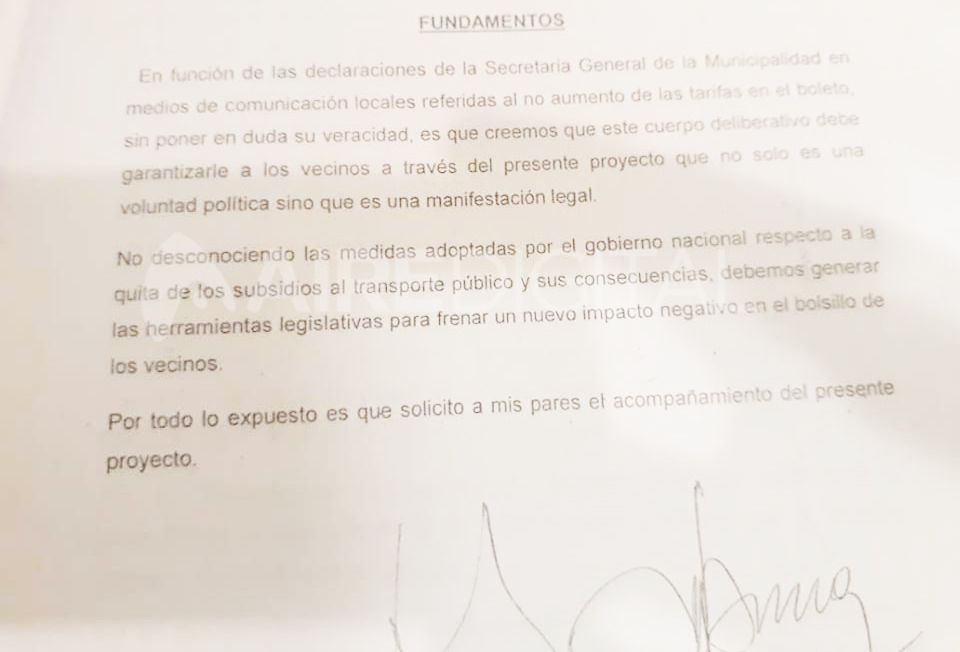 Sin embargo, el edil reconoció que “el valor del dólar fue lo que obligó a la actualización tarifaria”.