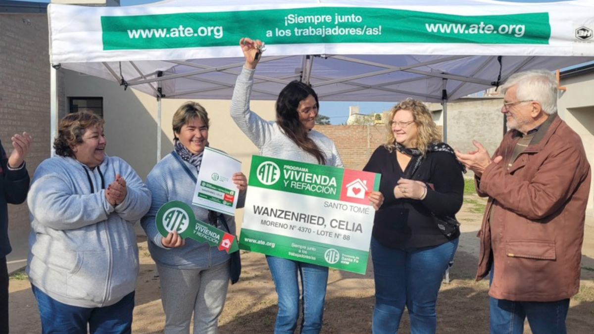 Este viernes la Asociación Trabajadores del Estado (ATE) entregó diez nuevas viviendas y con estas alcanza las 150 casas. "Es una gran alegría y este sueño que tenemos todos y todos los trabajadores de contar con nuestra casa, de terminar estar deambulando con alquileres o viviendo con sus padres. Así que es una alegría inmensa", agregó Jorge Hoffmann, secretario General del sindicato.