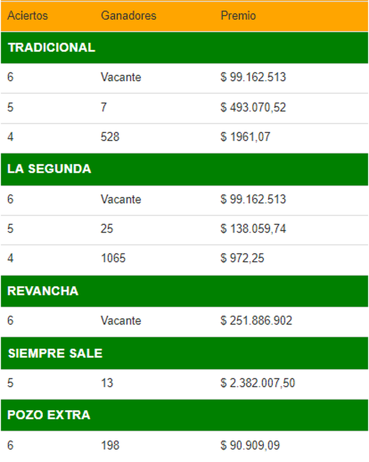 Revancha: hay un solo premio principal que se reparte entre aquellos que tengan 6 aciertos.