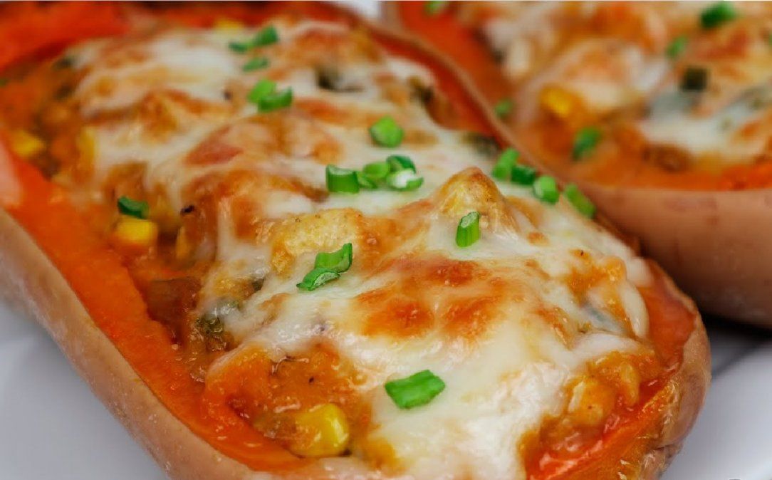 Mientras en un sartén preparar el relleno a gusto, puede ser únicamente de vegetales, con carne o incluso con soja texturizada. Cuando esté blanda la calabaza rellenar y colocar queso cremoso light por encima para gratinar. Por último, dibujar una carita con otros vegetales por encima al servir.