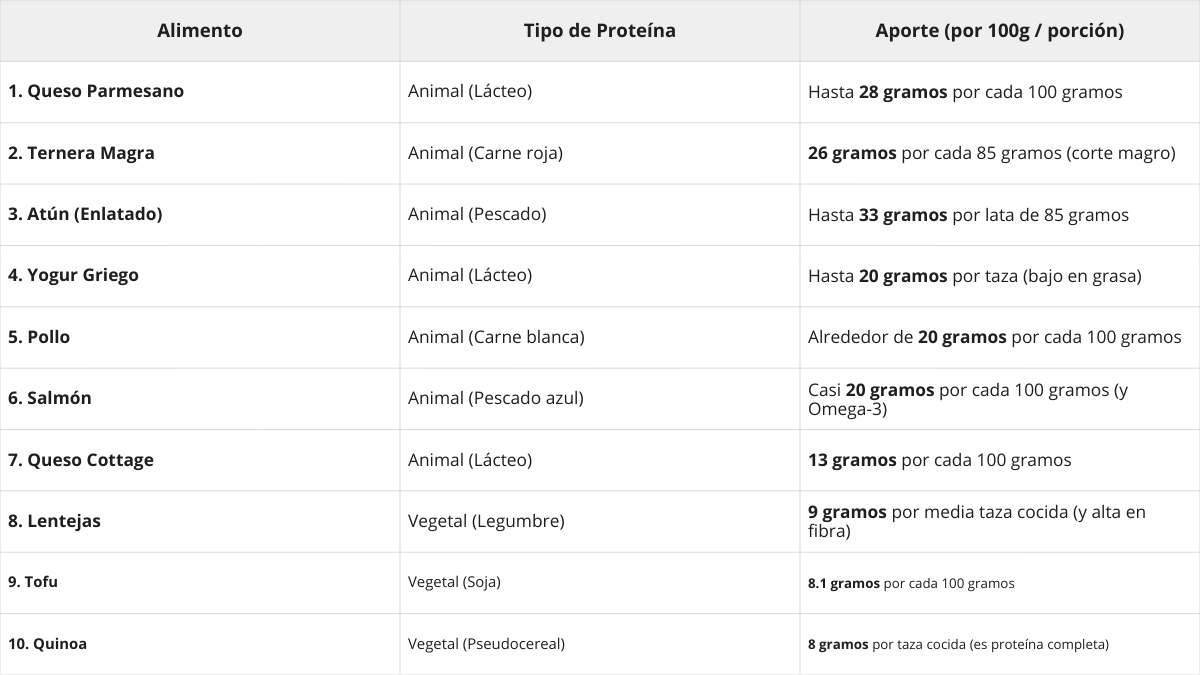 Estos alimentos, tanto de origen animal como vegetal, son una excelente fuente de proteínas de alta calidad, ideales para complementar tu ingesta diaria: