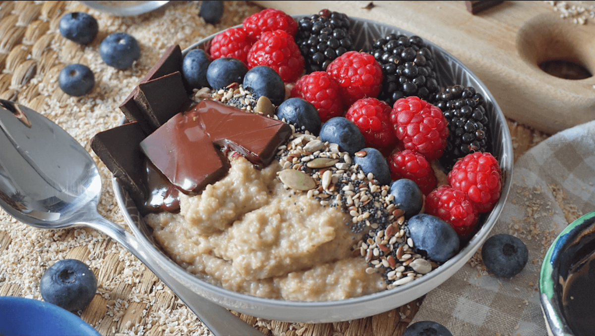 Servir el postre de avena en tazones individuales y decoralo con frutas frescas de tu elección.