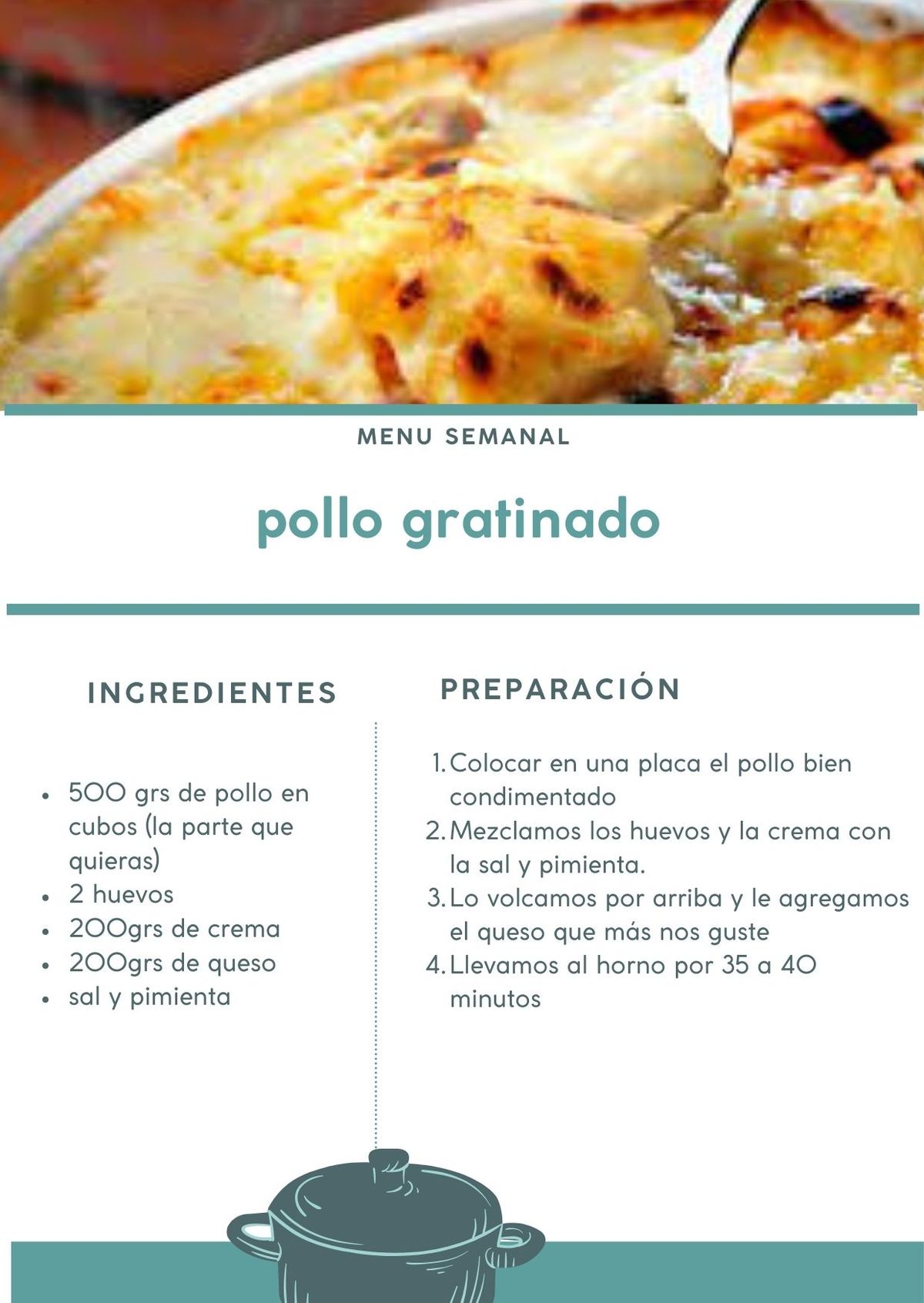El pollo gratinado es una receta perfecta para quienes buscan una comida rápida, deliciosa y reconfortante. Con pocos ingredientes y una preparación sencilla, podrás disfrutar de un plato cremoso y lleno de sabor, ideal para cualquier día de la semana.