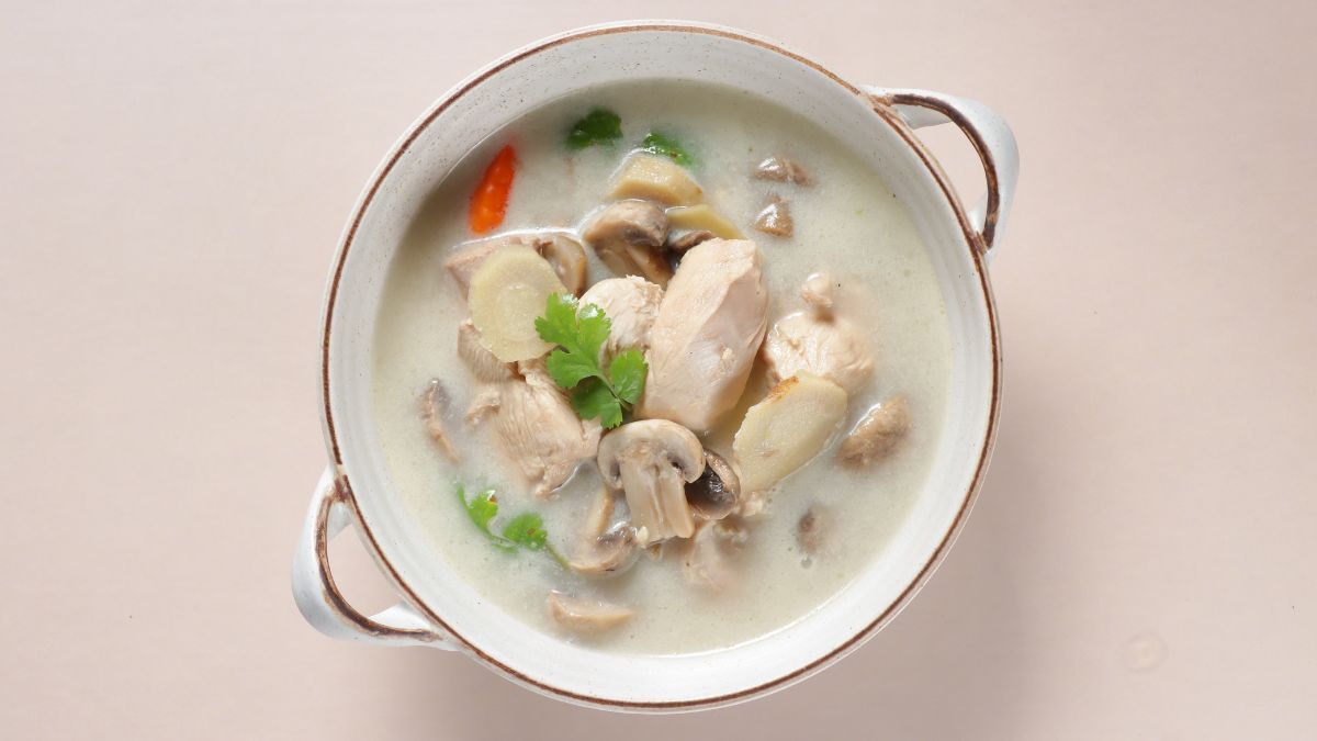 La sopa thai de coco con pollo y champiñones es un plato lleno de sabor y frescura, inspirado en la cocina tailandesa. Su base cremosa de leche de coco y los toques de jengibre, limón y hierbas. Los champiñones y el pollo le dan cuerpo y proteína, mientras que las especias le aportan un toque picante y aromático.