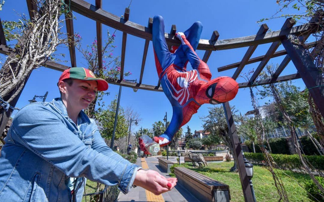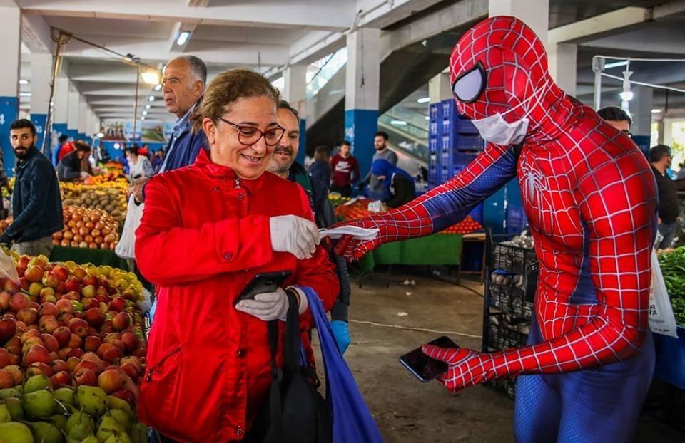 Burak Soylu, un 'cosplayer' que personifica al Hombre Araña en la ciudad turca de Antalya, ayuda a las personas mayores durante la pandemia de coronavirus llevándoles alimentos y otras compras necesarias para que puedan quedarse en domicilios. La foto del servidor público se volvió viral.