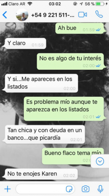 La víctima viralizó por redes sociales el caso de acoso que sufrió cuando un empleado de una sucursal del Banco Provincia consiguió su número de teléfono y comenzó a acosarla mediante WhatsApp.