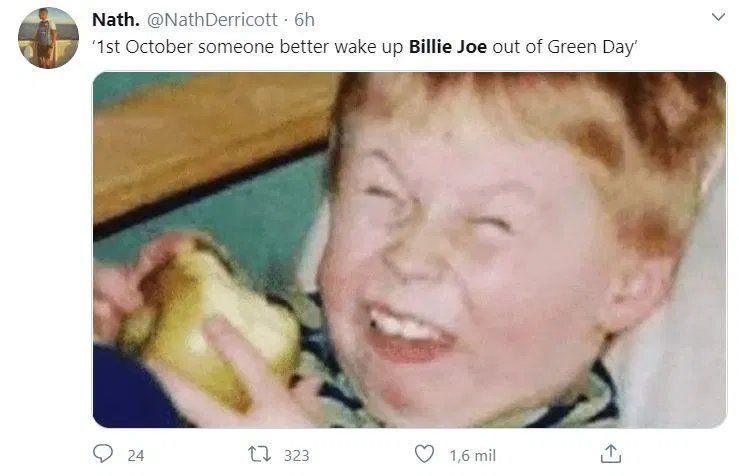 “Wake me up when september ends” o “despiértame cuando septiembre termine”, así comenzaba la popular canción de Green Day que corearon millones de fanáticos en todo el mundo en la década del 2000 y que se convertiría en el martirio de la carrera de su vocalista, Billie Joe Armstrong. Este jueves 1 de octubre los usuarios de redes están haciendo tal lo que pidió y llegaron a convertirlo en tendencia mundial en Twitter.