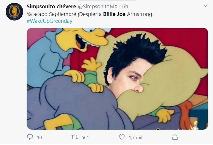 Este jueves los usuarios de Twitter recordaron que en efecto septiembre ya pasó, por lo que Billie Joe puede despertar tranquilo de toda la locura que transcurrió en el último mes. Con más de 20 mil mensajes en la popular plataforma, los internautas colmaron el feed de memes, gifs y videos sobre la premisa.