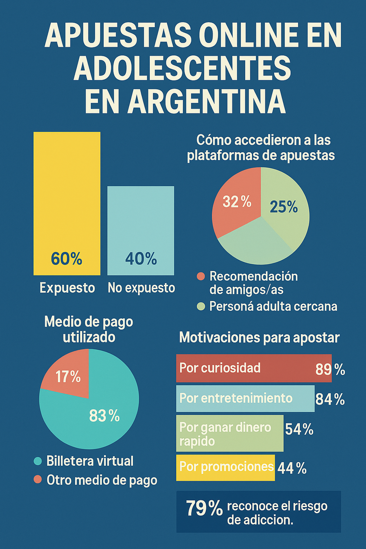 El trabajo, que incluyó más de 11.400 encuestas en escuelas secundarias de todo el país, revela una realidad que hasta hace poco permanecía subestimada: la mayoría de los adolescentes conoce o tuvo contacto directo con plataformas de apuestas, y una proporción significativa ya jugó, perdió dinero o incluso desarrolló signos tempranos de dependencia.