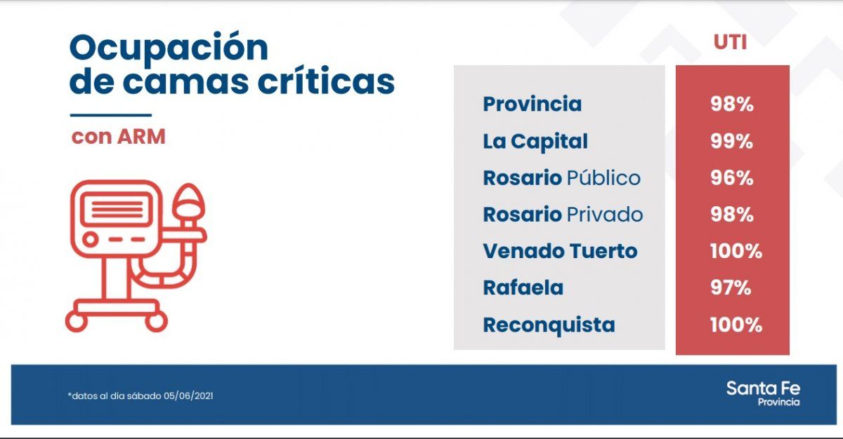 En el repaso de la situación epidemiológica, la funcionaria informó que actualmente se llegó a un 98% de ocupación de camas en toda la provincia. En el Departamento La Capital es del 99%, mientras que Venado Tuerto y Reconquista están en una ocupación del 100%.