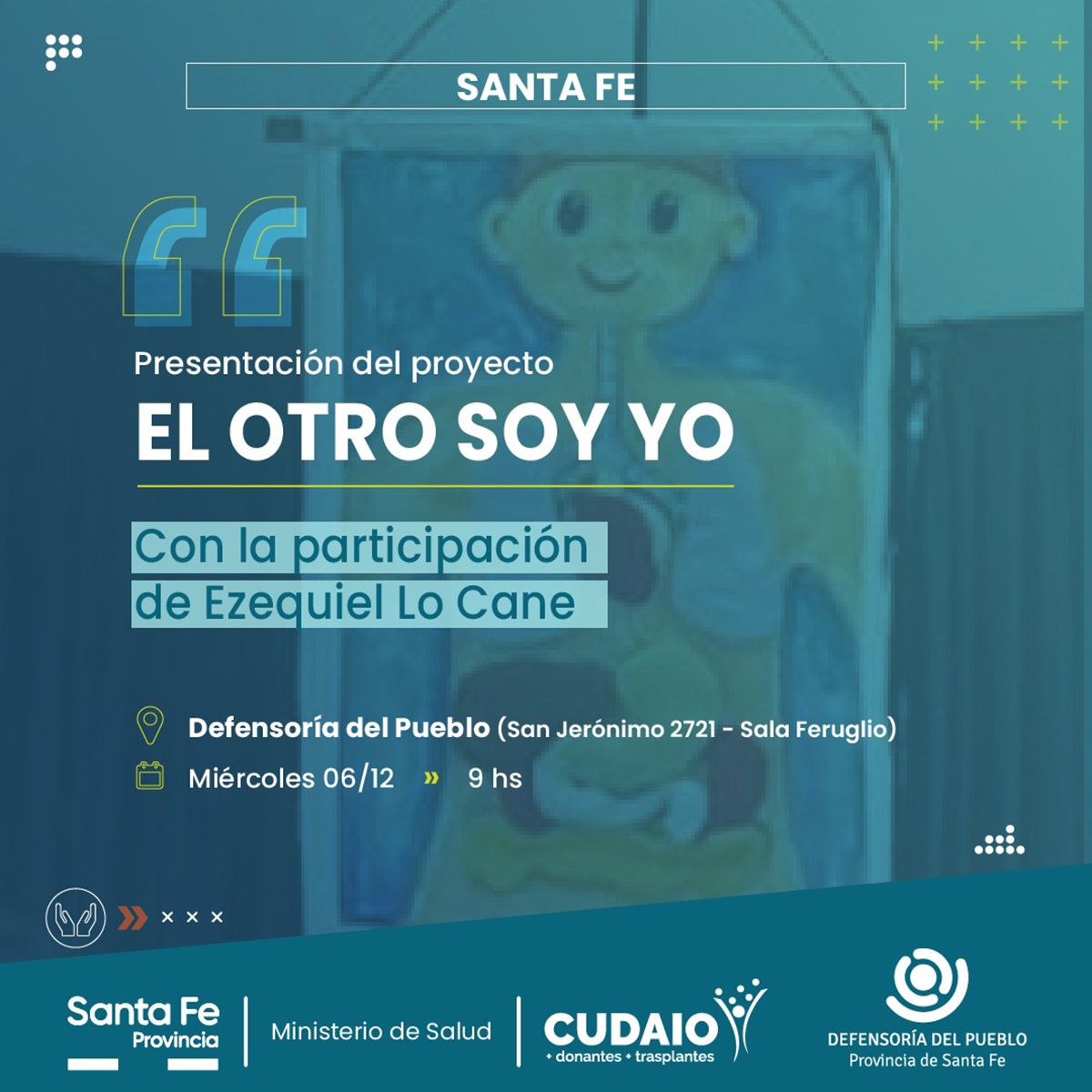 Se presentará un proyecto que promueve la inserción de la temática "donación, trasplante de órganos y tejidos" dentro del sistema educativo, llamado “El otro soy yo”. Será este miércoles por la mañana en la defensoría del pueblo de la ciudad de Santa Fe y contará con la presencia de Ezequiel Lo Cane, papá de Justina y otras autoridades.