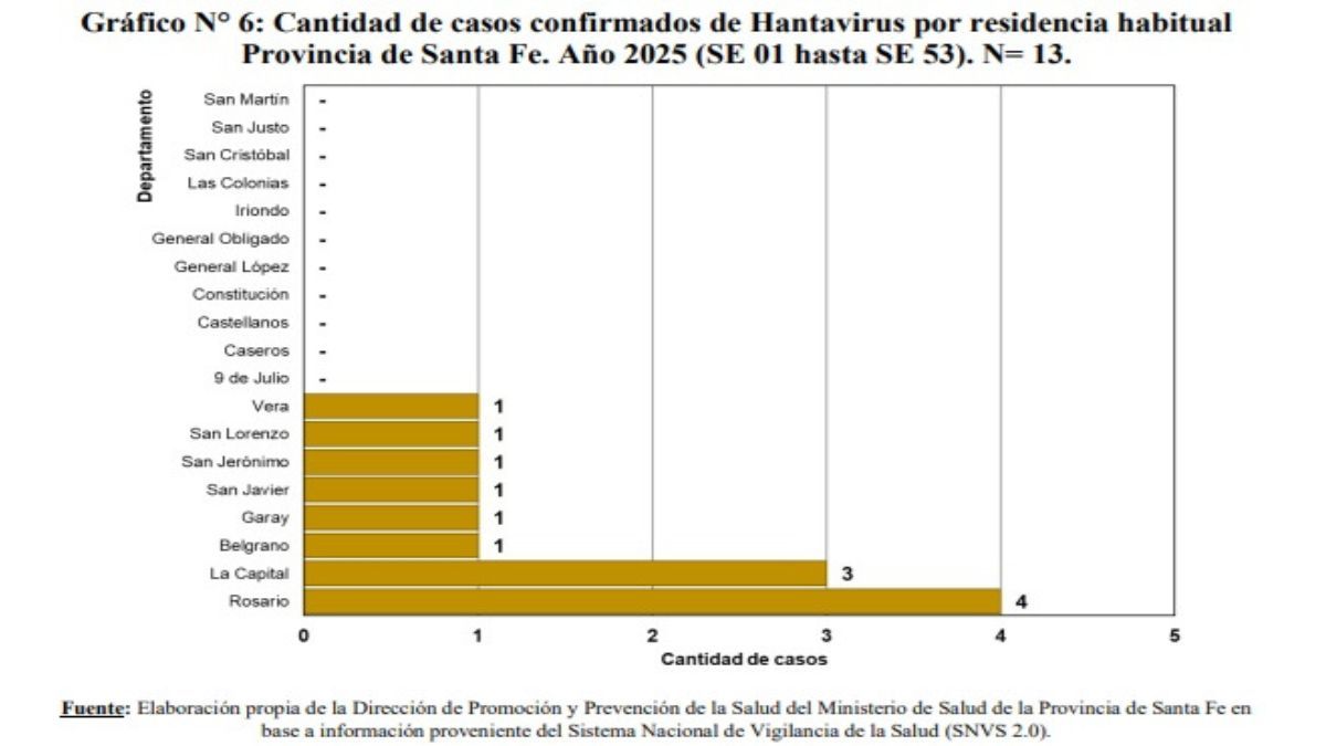 Los departamentos con mayor cantidad de casos fueron Rosario (4) y La Capital (3).