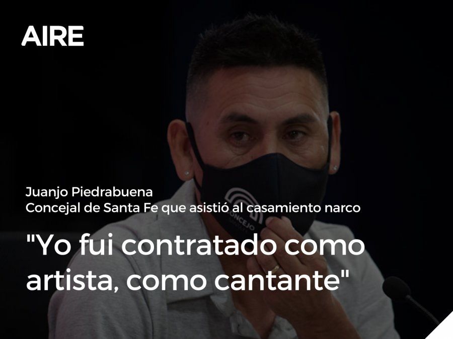 El concejal contó que se enteró del triple crimen ocurrido cuando ya estaba llegando a Santa Fe, de regreso tras haber cantado. “Nos llamó la atención la seguridad que había en el lugar”, expresó. Piedrabuena aclaró que asistió "como a cualquier baile" y que no conocía a los novios que se casaban, ambos implicados en causas por narcotráfico. "Yo fui, canté y me vine", aseguró.