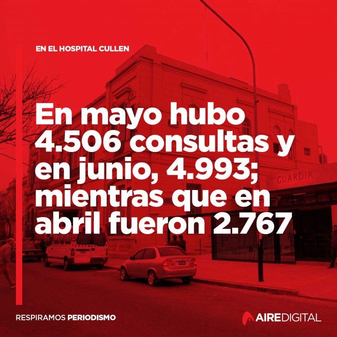 A partir de mayo los santafesinos volvieron a las calles de forma escalonada tras la cuarentena estricta que comenzó el 20 de marzo. En la segunda mitad de mayo y a principio de junio se reactivaron actividades con mayor circulación como el comercio, los bares y restaurantes y las actividades físicas. Es por esto que en junio aumentaron las consultas en la guardia del Hospital José María Cullen de la ciudad de Santa Fe que volvieron a los números de atenciones que registraban antes del aislamiento por la pandemia.