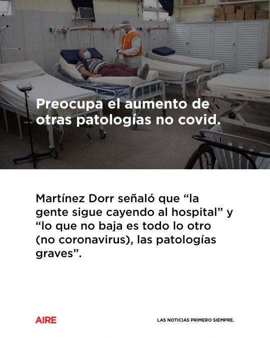 La principal preocupación de la guardia en cuanto al aumento de consultas, es el crecimiento de las otras patologías que no tienen relación con el coronavirus. Martínez Dorr señaló que “la gente sigue cayendo al hospital” y “lo que no baja es todo lo otro (no coronavirus), las patologías graves”.