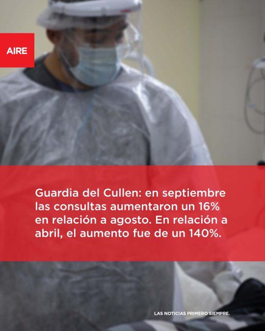 Un ejemplo de esta situación ocurrió en abril, que fue el mes de cuarentena más estricta y en el que solo hubo 2.767 consultas generales. En relación a abril de este año, en septiembre la cantidad de atendidos en la guardia del Cullen alcanzó un 140% más.