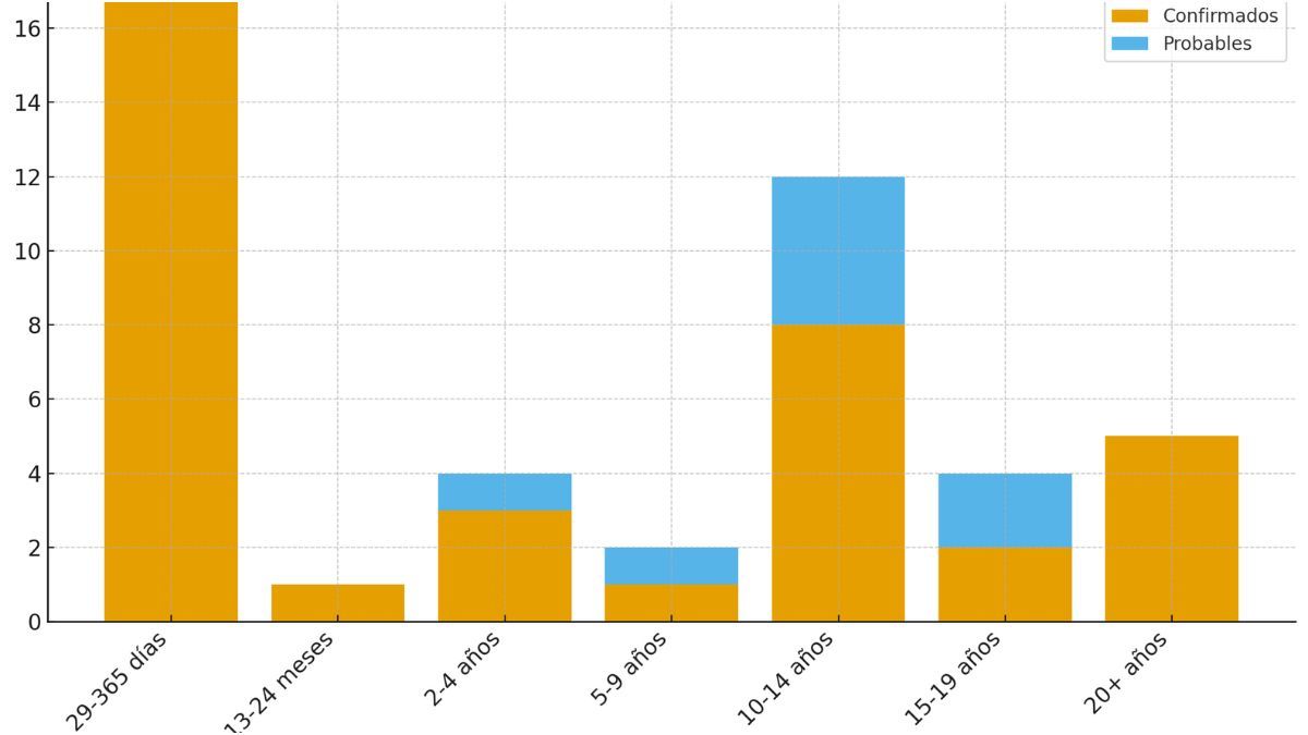 El informe detalla que 32 de los 37 casos confirmados pertenecen al departamento Rosario, seguido por La Capital (3), General López (1) y Caseros (1). Afecta a niños, adolescentes y adultos, con edades entre 1 mes y 41 años.