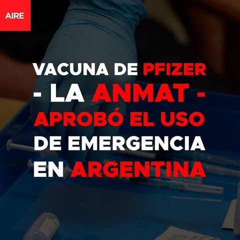 El gobierno nacional informó esta noche que la Administración Nacional de Medicamentos, Alimentos y Tecnología Médica (Anmat) aprobó el uso de emergencia de la vacuna de Pfizer para su aplicación en la Argentina contra el coronavirus.