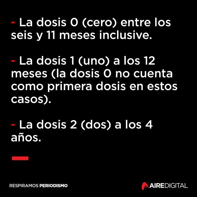 —La vacuna es a virus vivo, por lo tanto no se puede aplicar a recién nacidos. No obstante, en estas regiones de Buenos Aires donde hay brote se agregó una dosis. Normalmente la primera es a los 12 meses (1 año de vida) y la segunda a los 4 (cuatro) años. Pero frente a ese nuevo escenario se incorporó lo que denominamos “dosis 0 (cero)” a partir de los 6 meses de vida y hasta los 11 meses inclusive, en estas áreas con circulación viral local. Además, los niños de entre 12 meses y los 4 años que viven en las jurisdicciones esas afectadas deben acreditar dos dosis de vacuna triple viral.