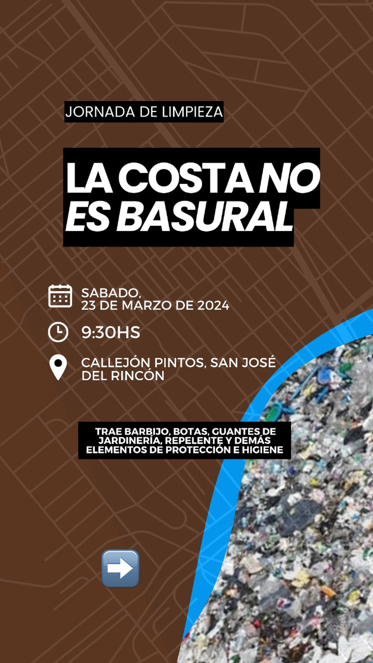 Bajo la consigna de "La Costa no es basural", un colectivo de distintas organizaciones de la sociedad civil, clubes náuticos, emprendimientos turísticos y de deportes náuticos de Santa Fe y alrededores, invitan a una jornada de limpieza en Callejón Pintos y la laguna Setúbal, zona en la que hasta hace poco funcionó el basural a cielo abierto donde se depositaban los residuos de la localidad de Rincón.