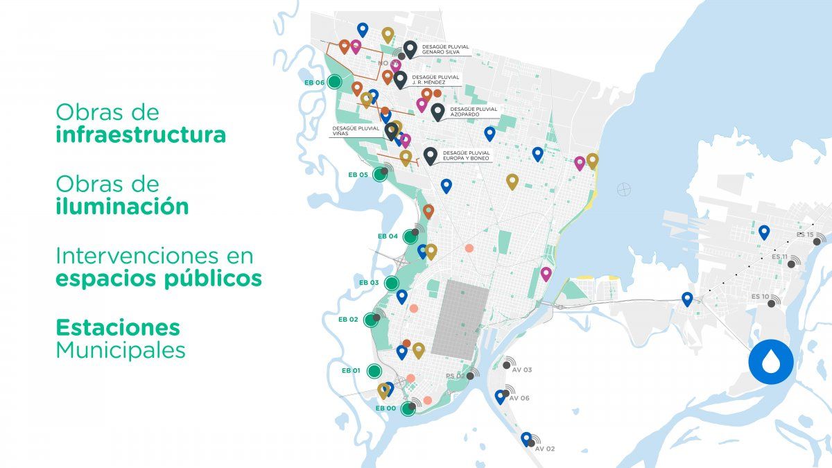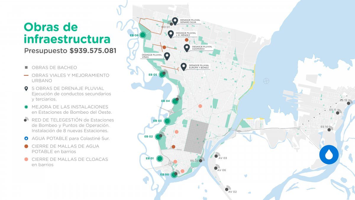 La misma está incluida entre las obras de infraestructura, que tienen un presupuesto total de $939.575.081. El mismo contempla también obras de bacheo, viales y mejoramiento urbano; 5 obras de drenaje pluvial, con la ejecución de conductos secundarios y terciarios; mejora de las instalaciones en estaciones de bombeo del oeste; una Red de Telegestión de estaciones de bombeo y puntos de operación; instalación de ocho nuevas estaciones; cierre de mallas de agua potable y de cloacas.