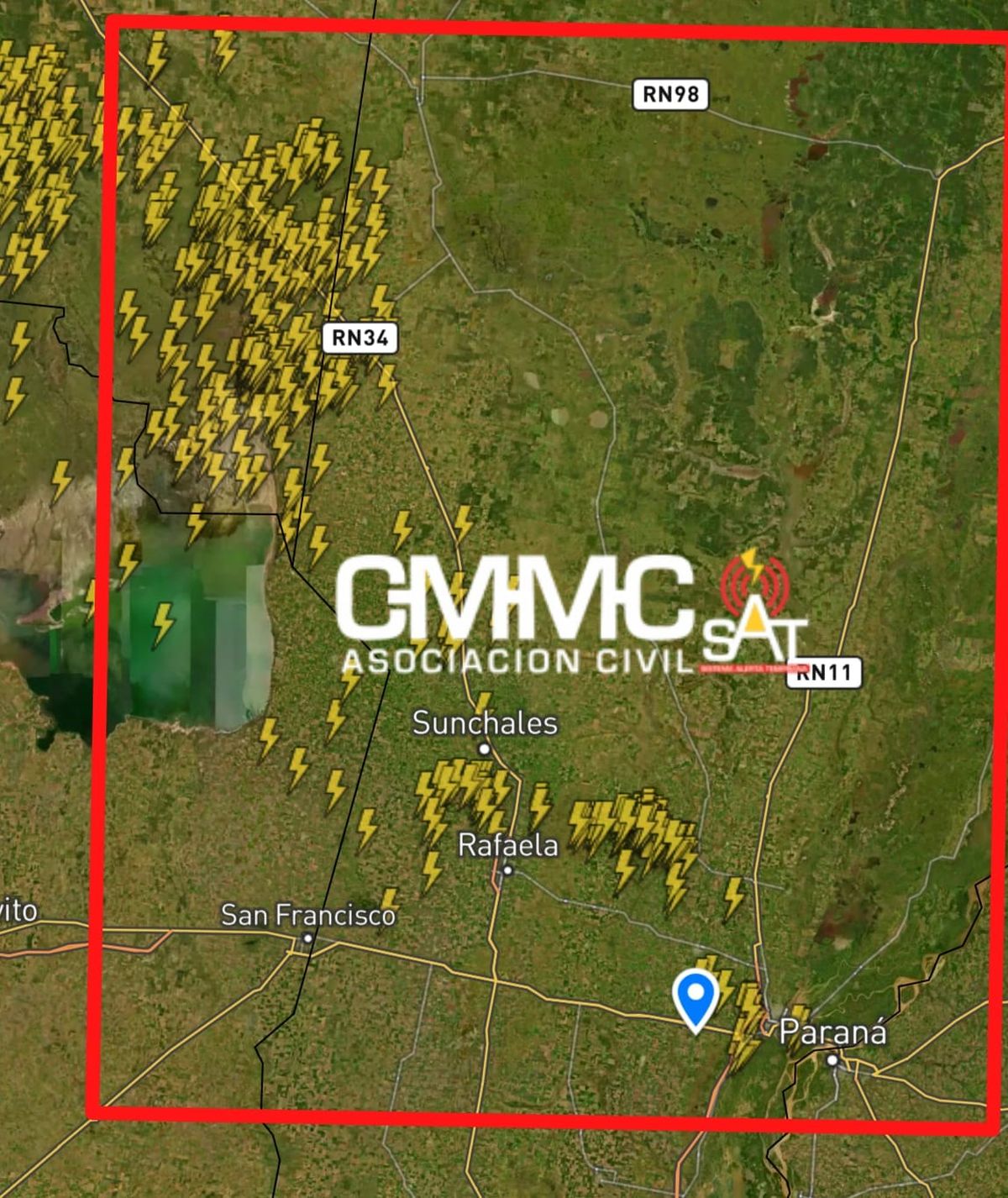 El Centro de Monitoreo Meteorológico y Climático SAT Santa Fe lanzó un aviso meteorológico este martes por la mañana por tormentas aisladas que abarca a varias localidades del centro y norte de la provincia de Santa Fe.