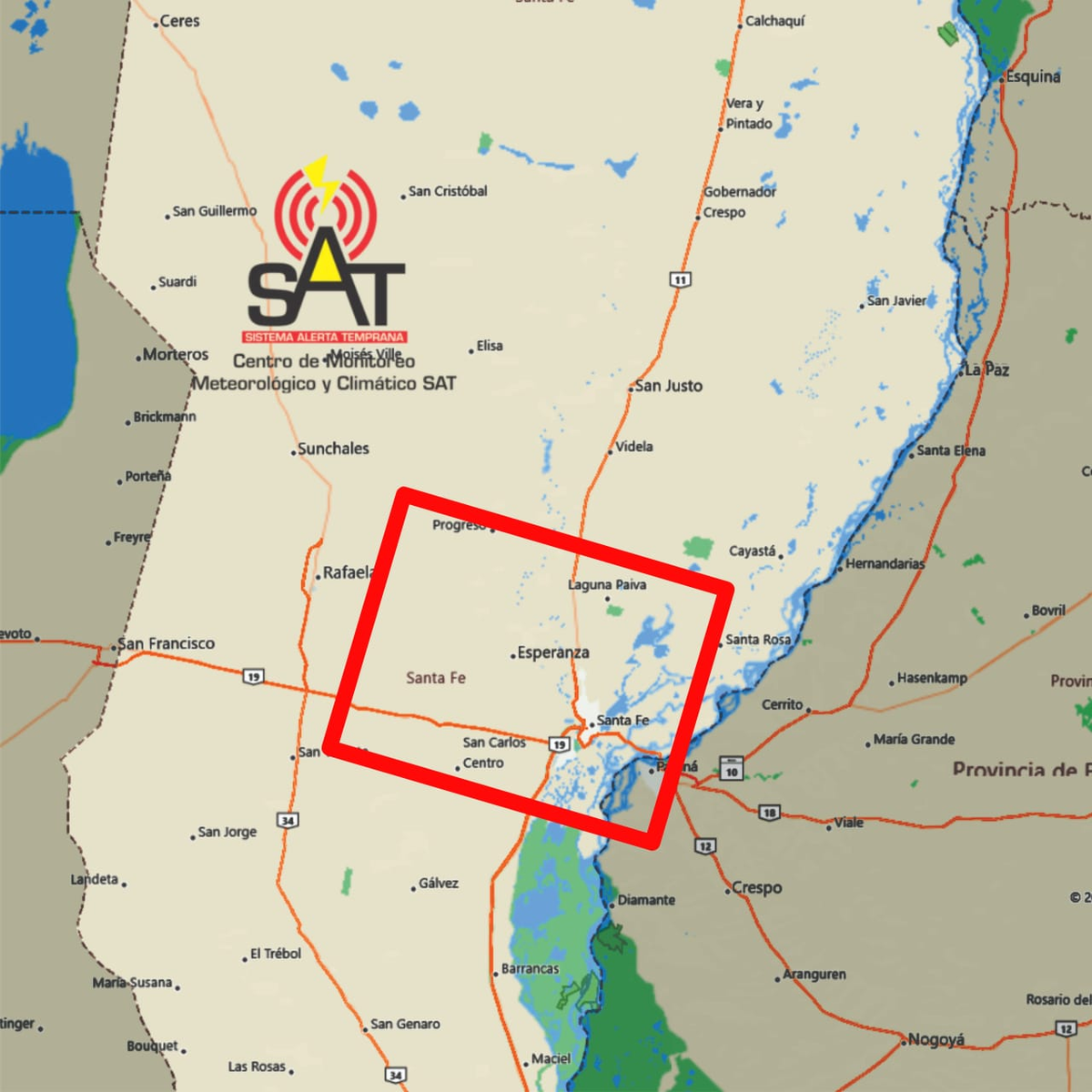 El Centro Monitoreo Meteorológico y Climático SAT lanzó este viernes por la mañana un aviso por tormentas que abarca a la ciudad de Santa Fe, Santo Tomé, Recreo, San Jerónimo Norte, San Jerónimo del Sauce, San Agustín, Esperanza y Franck.