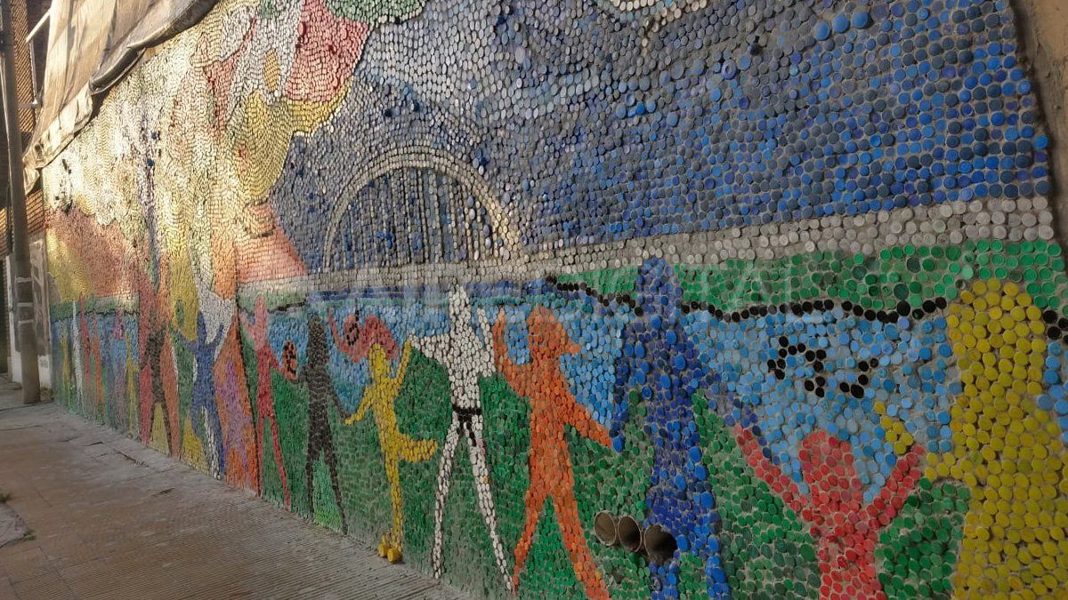 Una de las paredes del club Unión de Santo Tomé luce más ecológica que nunca. El deterioro de la pintura dio lugar a una idea maravillosa que surgió entre la comisión directiva y profesores y alumnos de la Escuela Secundaria Orientada 592 de aquella ciudad. Con más de 50.000 tapitas, realizaron un colorido mural que representa y recuerda los Derechos del Niño.