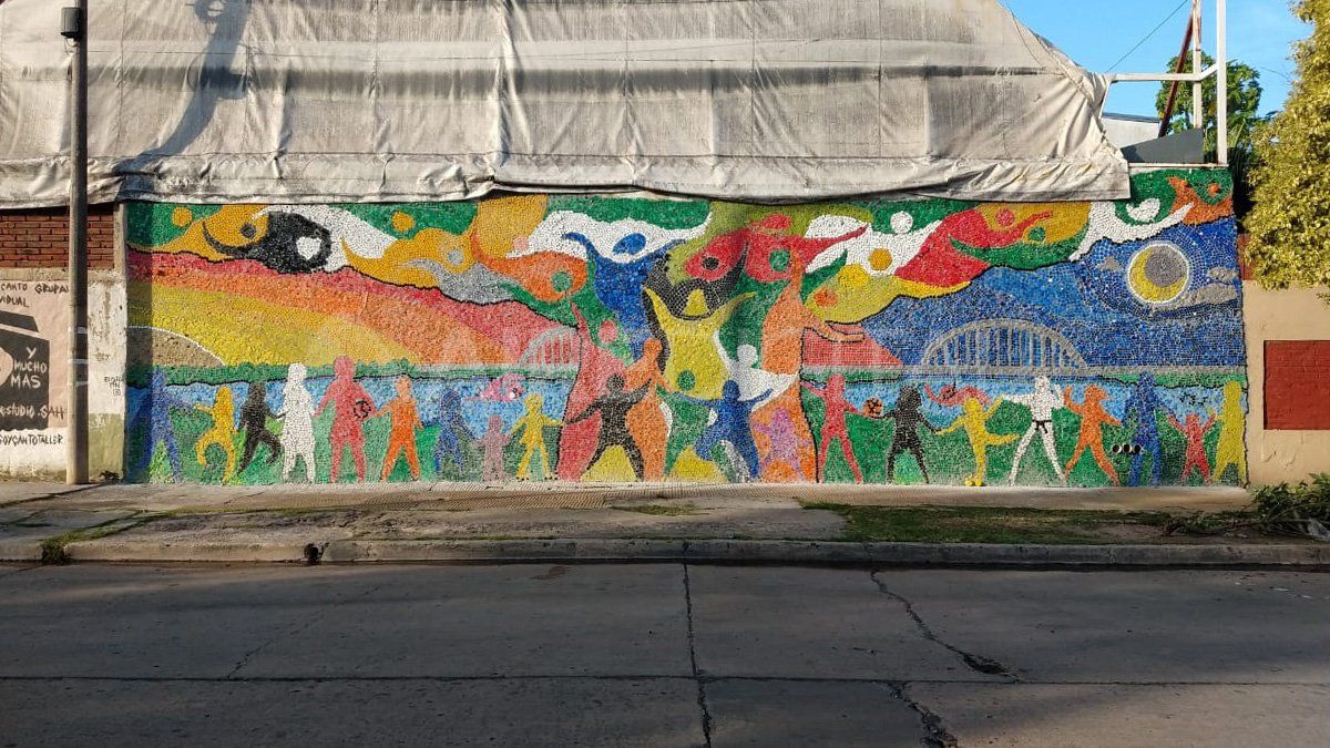 Tras diez días de trabajo intenso, docentes y estudiantes finalizaron el mural. "Estuvimos trabajando desde la mañana hasta que se escondía el sol por la tarde", contó Adriana Cervilla a la periodista Romina Elizalde.