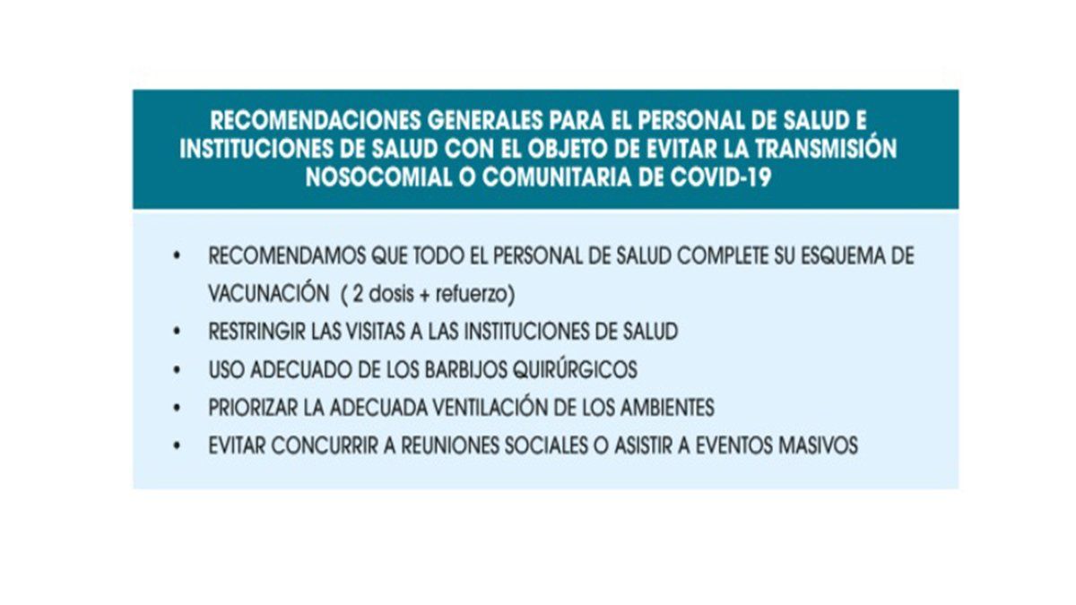 Además, en otro apartado, la Sadi recomienda las siguientes directivas para el personal de Salud: