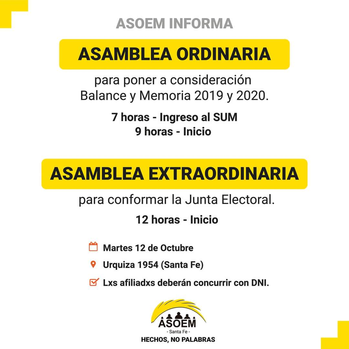 La sede de la Asociación Sindical de Obreros y Empleados de la Municipalidad de Santa Fe (Asoem) tiene gran concurrencia este martes. Esto es porque se llevarán a cabo dos asambleas, una a las 9 de la mañana, en la que se pondrá en balance y memoria el 2019 y 2020, y otra a las 12 para conformar la junta electoral. Desde la madrugada hay empleados municipales ingresando a la sede y el tránsito está totalmente interrumpido en Urquiza y Juan de Garay.