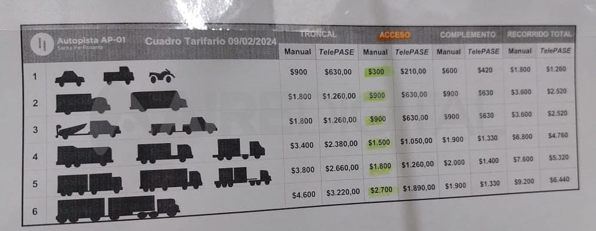 La Autopista Rosario-Santa Fe tiene nuevos valores en el costo de sus peajes a partir de este viernes, debido a un aumento que autorizó el Gobierno provincial y que impacta fuertemente en la tarifa: costará el doble.
