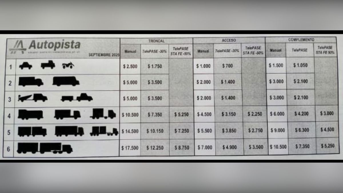 A partir de este lunes 1 de septiembre ya rigen nuevos valores de precios en los peajes de la autopista Rosario - Santa Fe.