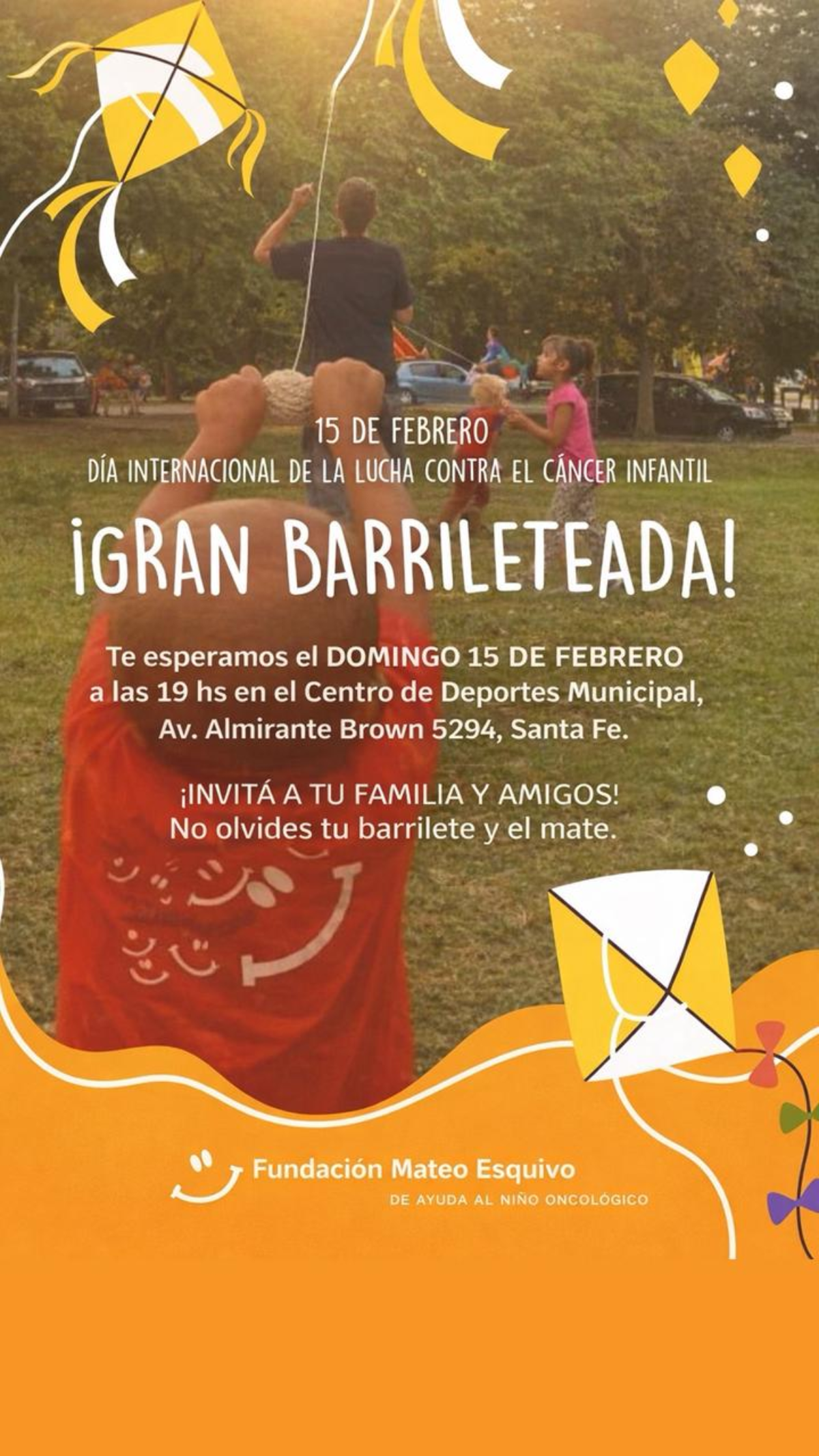 Este domingo 15 de febrero, en el marco del Día Internacional de la Lucha contra el Cáncer Infantil, la ciudad de Santa Fe será escenario de una nueva edición de la tradicional barrileteada solidaria organizada por la Fundación Mateo Esquivo.