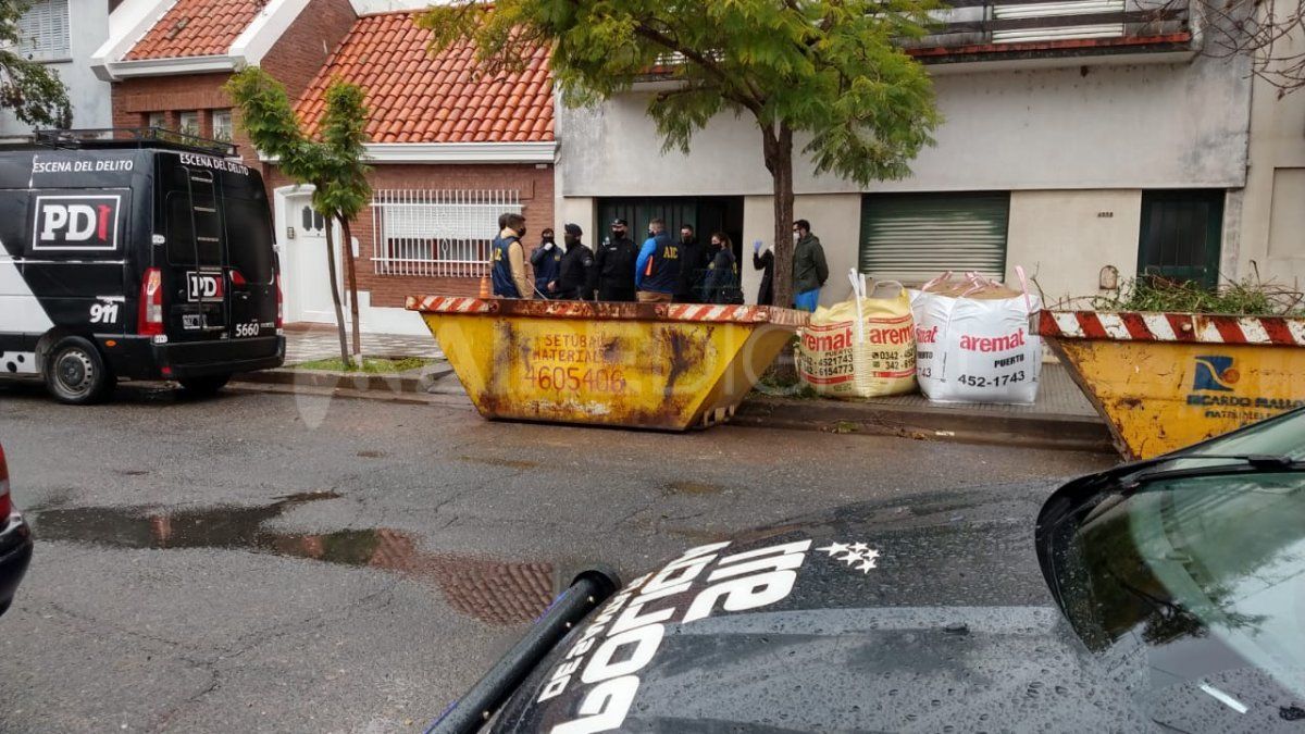 Personal de la Agencia de Investigación Criminal y de la Comisaría Tercera trabajan en la casa donde se produjo el lamentable episodio.