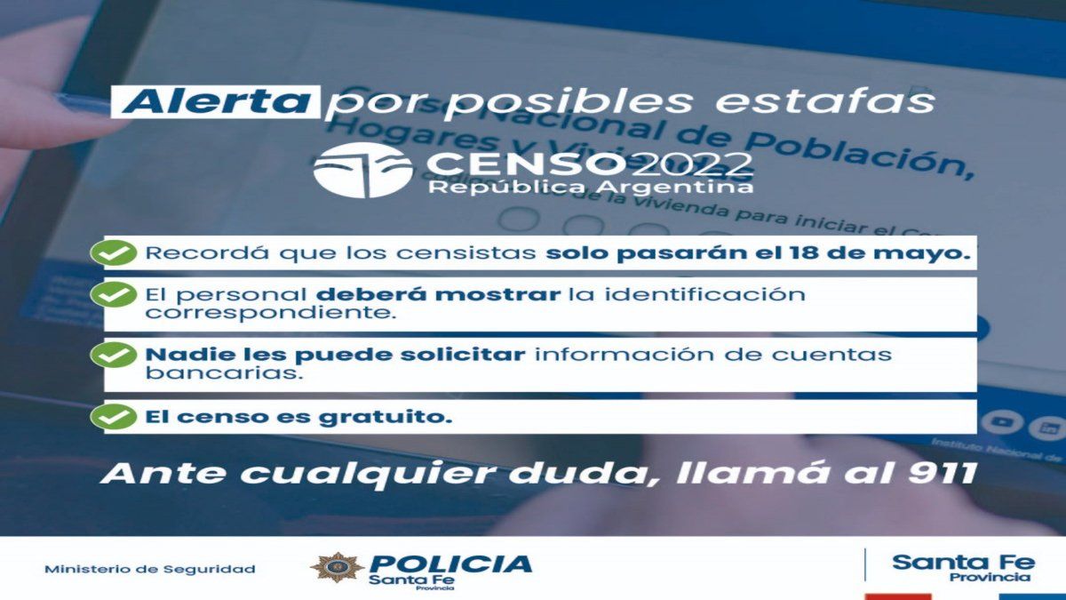 El próximo miércoles 18 de mayo se realizará el Censo 2022 y con el objetivo de evitar estafas, desde el Ministerio de Seguridad de Santa Fe lanzaron una serie de recomendaciones al momento de ser visitados por el censista. A su vez, piden no reproducir información falsa y hacer las denuncias correspondientes si fuera necesario.