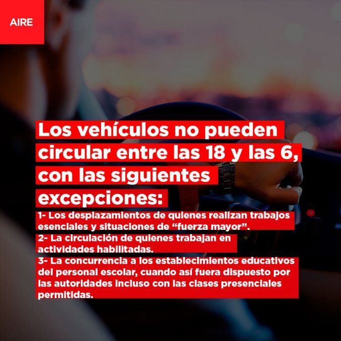 Los vehículos no pueden circular entre las 18 y las 6, con las siguientes excepciones: