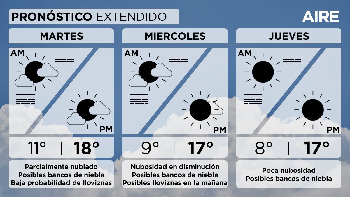 Durante toda la semana, no se esperan grandes cambios térmicos, y se mantendrá la posibilidad de bancos de niebla en las primeras horas del día, lo que podría reducir la visibilidad en rutas y caminos.