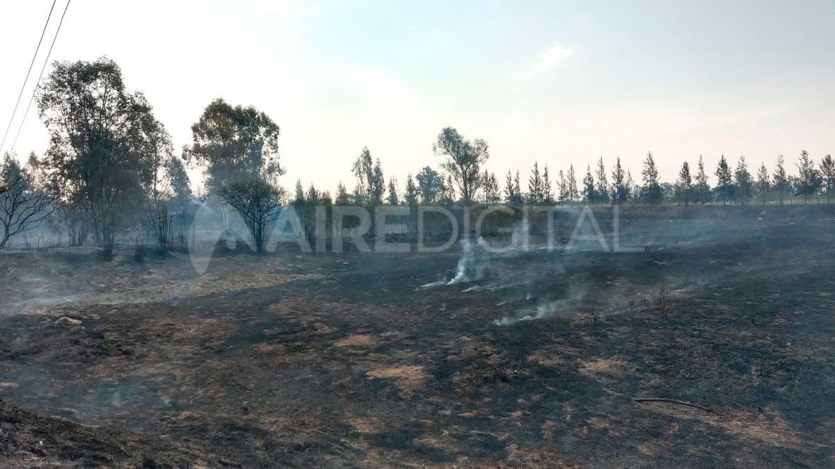 Por esta razón, intentan extinguir las llamas con baldes y mangueras pero piden la asistencia de Bomberos que ya estuvieron ayer en el lunes. También está presente una cuadrilla de la Empresa Provincial de la Energía para cortar la electricidad porque algunos postes de luz fueron tomados por el fuego y terminaron tumbados.