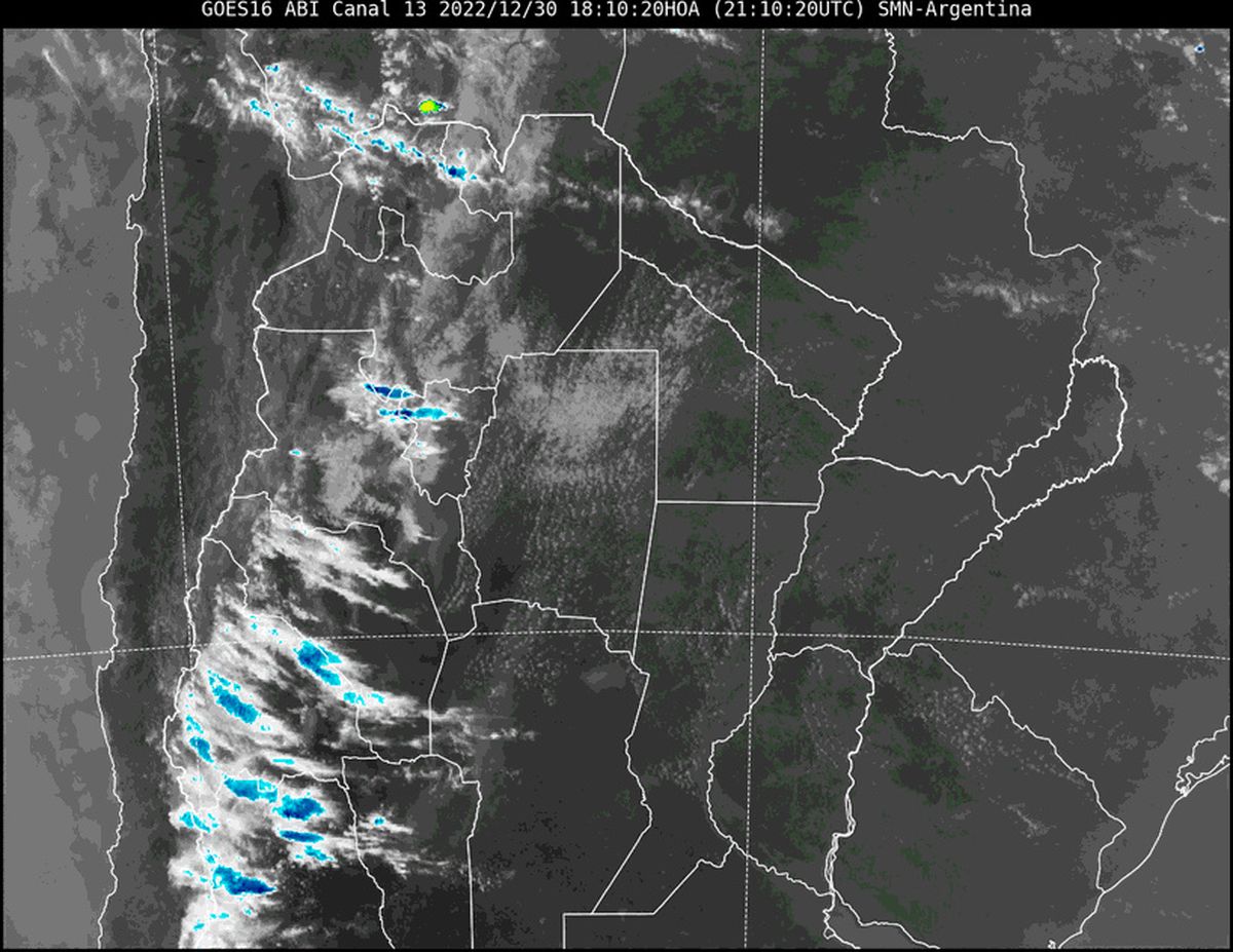 En la imagen satelital se observa el cielo de nuestra provincia con poca nubosidad. También se observa nubosidad que se forma desde la cordillera de los Andes hacia Cuyo. Esto es aire húmedo que ingresa en altura, y que producirá el aumento de nubosidad en la jornada del sábado.