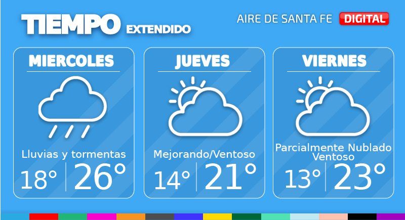 Este miércoles continuarán las condiciones inestables con probables lluvias y tormentas a lo largo de todo el día. La temperatura máxima será de 26° y habrá viento leve del noreste con algunas ráfagas moderadas.