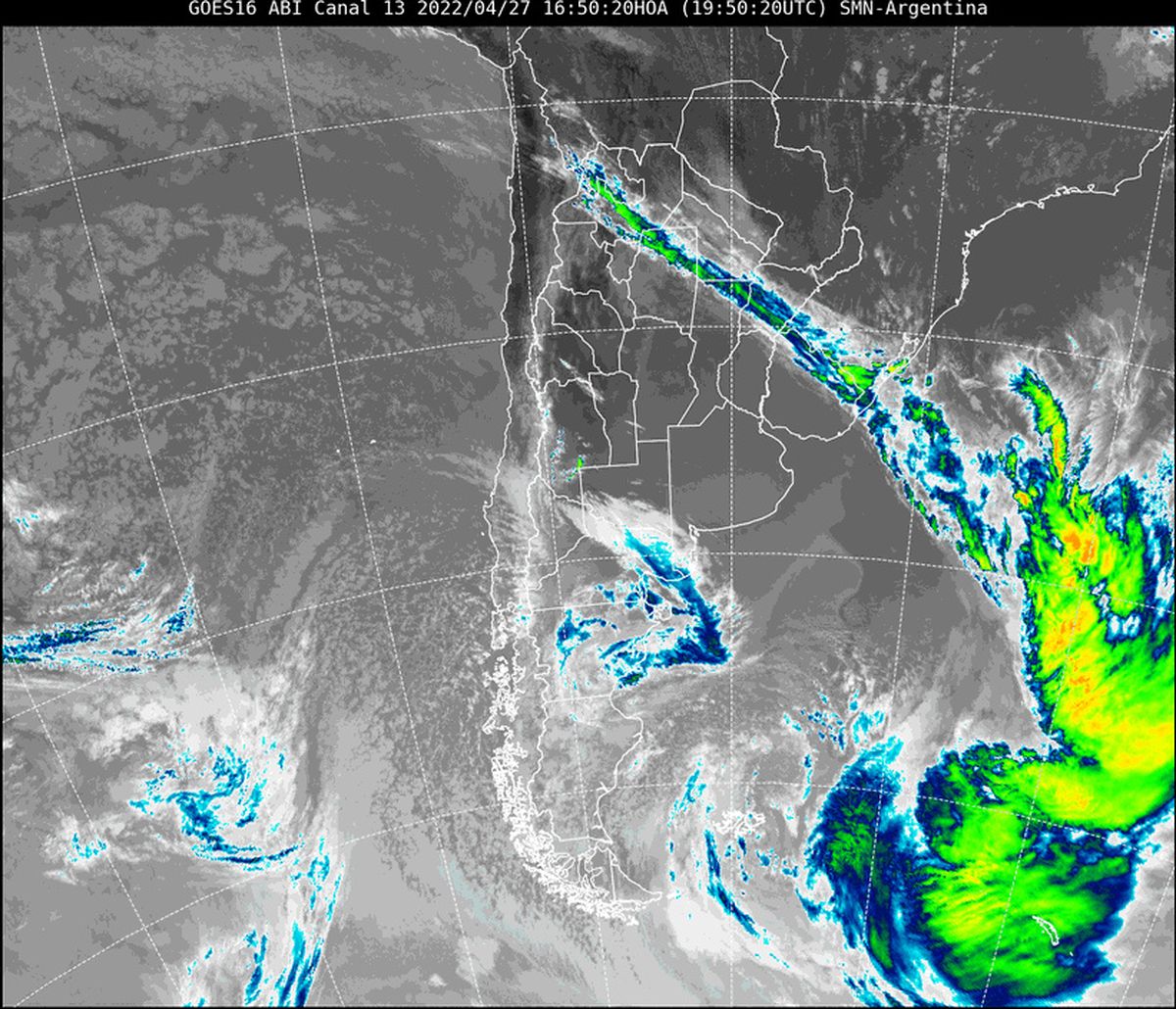 El técnico superior en Meteorología de AIRE, Pablo Lucero, explicó que en la imagen satelital se observa cielo prácticamente despejado en toda la provincia. Solamente el extremo noreste continúa con nubosidad que produce algunas precipitaciones débiles en la zona.