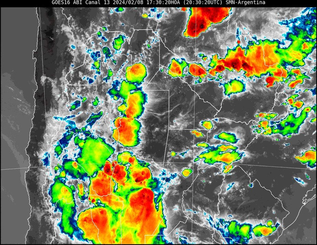 De acuerdo a los últimos datos satelitales, se observa todo el centro oeste argentino con nubosidad asociada a fuerte inestabilidad. En esa zona se registran lluvias y tormentas de variada intensidad, algunas fuertes.