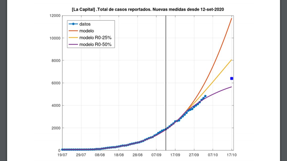 El informe con fecha de este lunes 5 de octubre, analiza los datos al sábado 3 y afirma que tras analizar la curva de casos en el departamento La Capital se detecta un resultado "positivo" asociado a las restricciones del 12 de septiembre. "Podemos afirmar que las medidas adoptadas y su acatamiento social redujeron en más de 1.000 el número de nuevos infectados y esto representa más de 20 camas de terapia intensiva con sus respectivos recursos humanos de salud", indica el estudio.