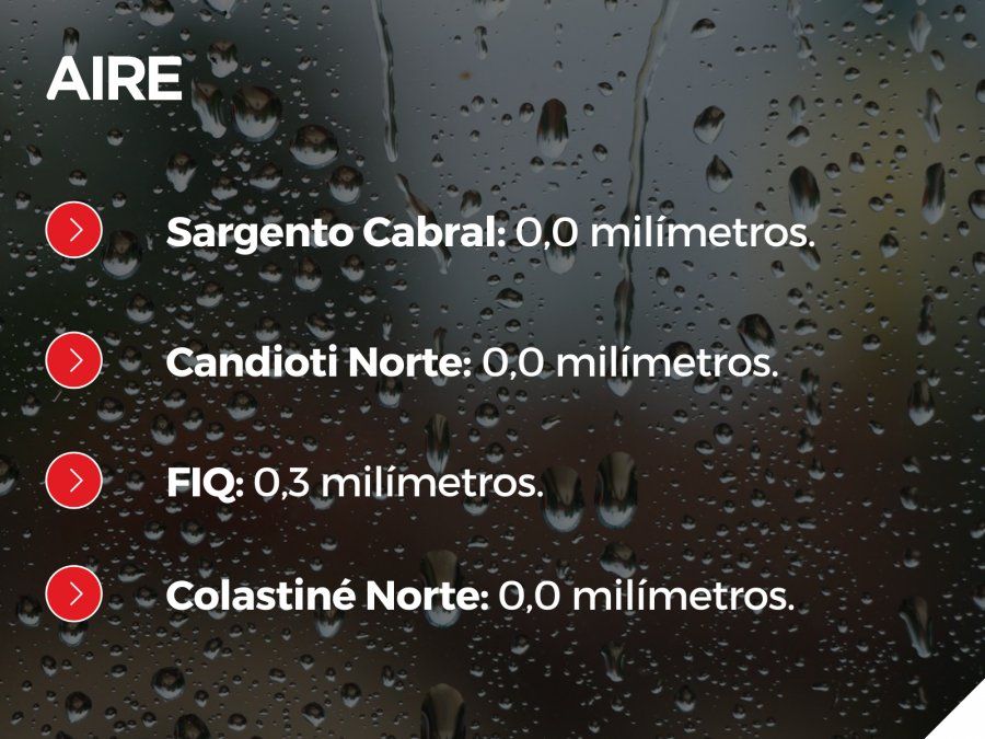 Tal como estaba previsto, llovió en algunas localidades de la provincia de Santa Fe. En la ciudad, apenas se acumularon 0,3 milímetros, según los registros en el centro de la Facultad de Ingeniería Química (FIQ).