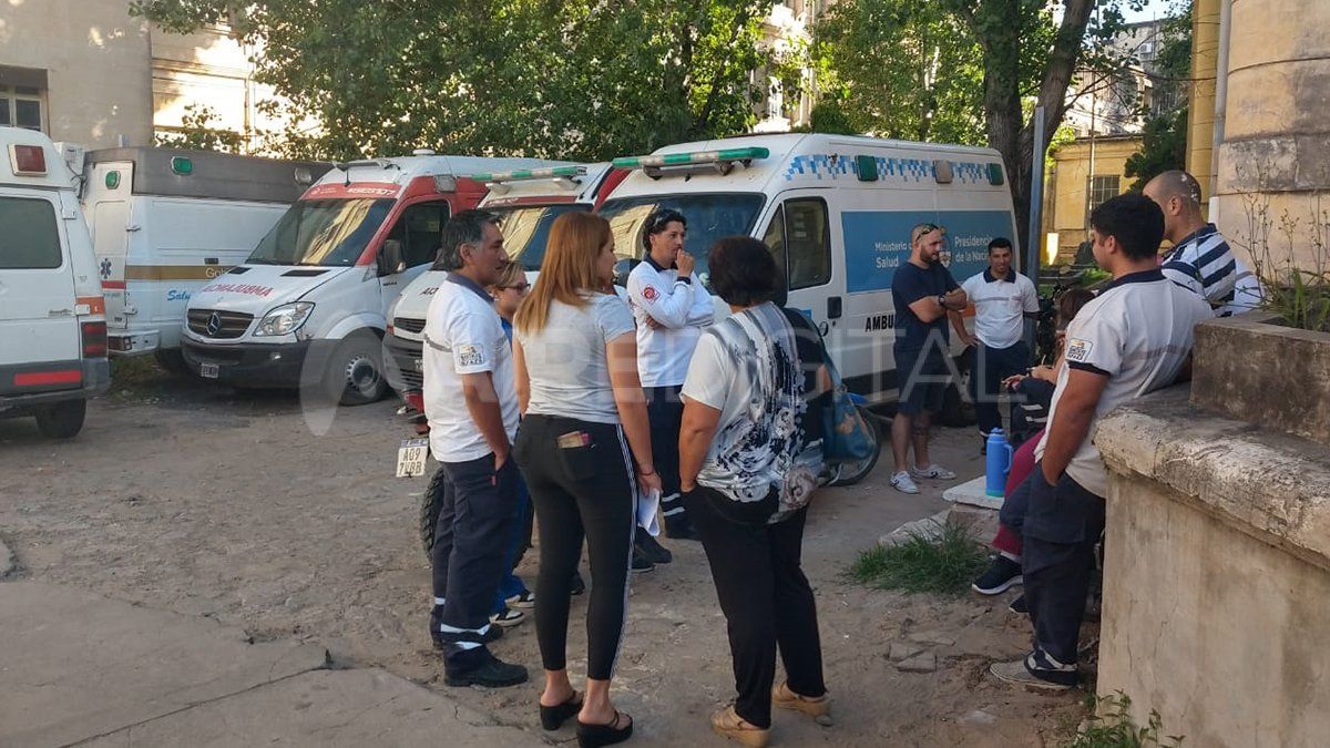 Los trabajadores de la Subsecretaría de Emergencias y Traslados realizan una asamblea en las instalaciones del ex Hospital Italiano donde evalúan la toma de medidas de fuerza.