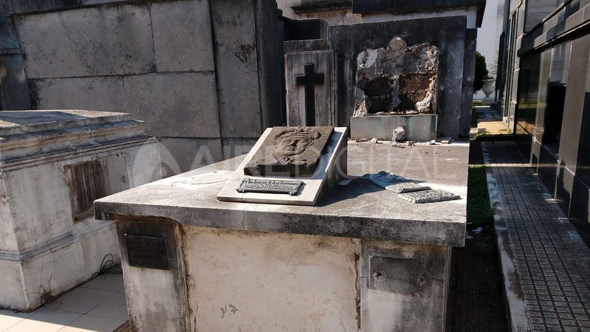 Al realizar el recorrido se pudo constatar lo que denunciaban los vecinos: placas robadas, falta de higiene y limpieza, vidrios rotos en panteones.