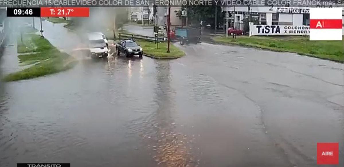 El relevamiento de Aire de Santa Fe con los oyentes constató que se cortó el tránsito en frente de la Universidad Tecnológica Nacional (UTN), en la Costanera cerca de las 10 de la mañana. Los colectivos dejaron de circular por momentos, los docentes no podían llegar a vacunarse y el agua ingresó a los negocios y casas. Zeballos y Blas Parera "es un mar", dijo una oyente.
