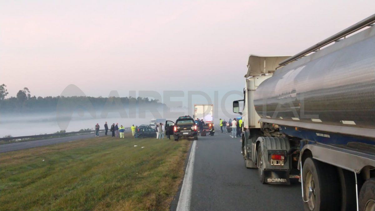 Dos accidentes se produjeron cerca de las 6.40 sobre la autopista Santa Fe-Rosario, a la altura del kilómetro 147 en zona del cementerio de Santo Tomé. El primer siniestro vial mano a Santa Fe involucró a una Volkswagen Surán y un camión Iveco. El conductor del auto chocó de atrás al camión. Los bomberos sacaron al conductor del auto que estaba atrapado. El segundo choque entre al menos cinco vehículos fue de alcance y participaron tres autos, un patrullero de la policía vial y un camión. Seis personas fueron trasladadas al Hospital Cullen: un hombre de 65 años se encuentra en estado delicado.