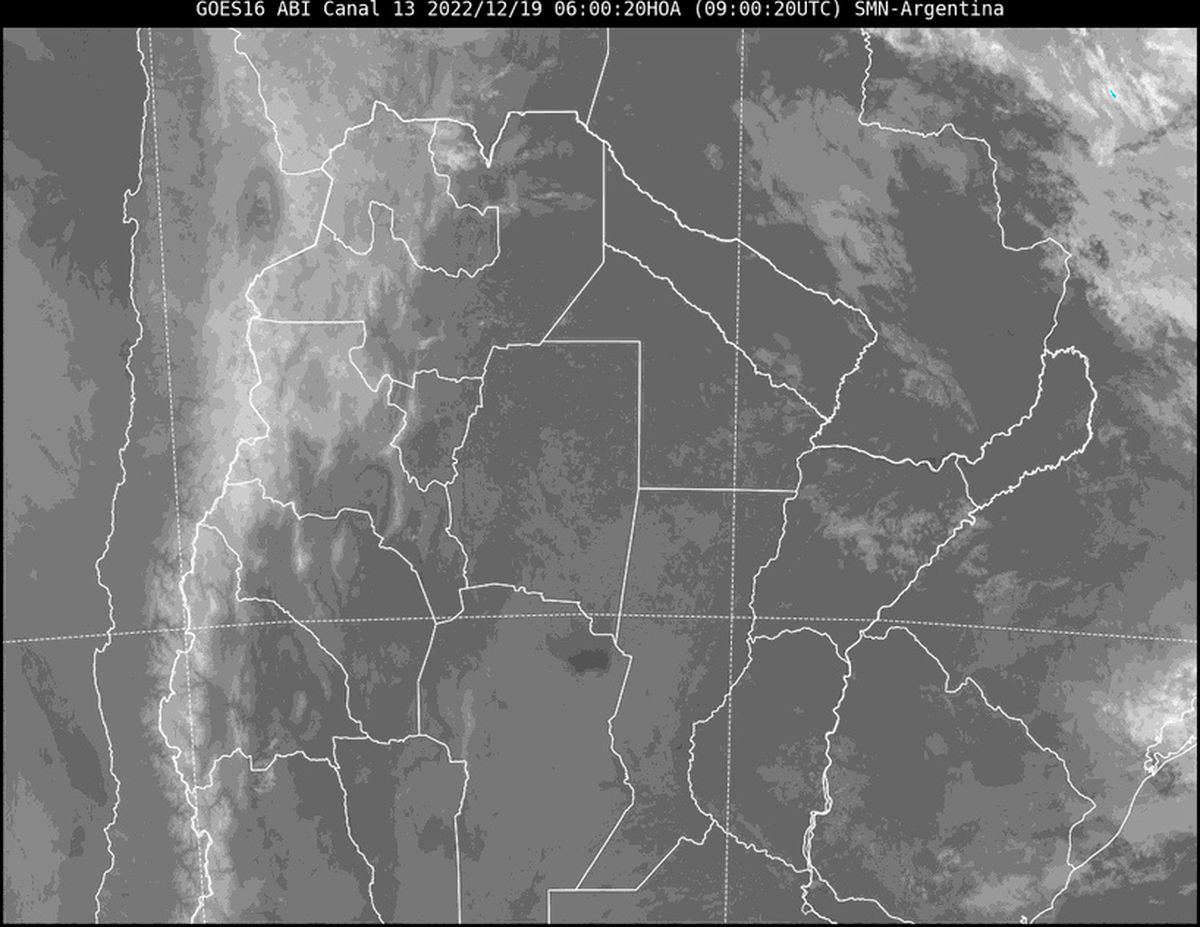 En la imagen satelital se observa poca nubosidad en la mitad norte de nuestro país. Las condiciones permanecen estables y el posicionamiento de los centros de alta y baja presión favorecen el viento del sector noreste. Esto, a su vez, colabora con la radiación solar para que las temperaturas se eleven.